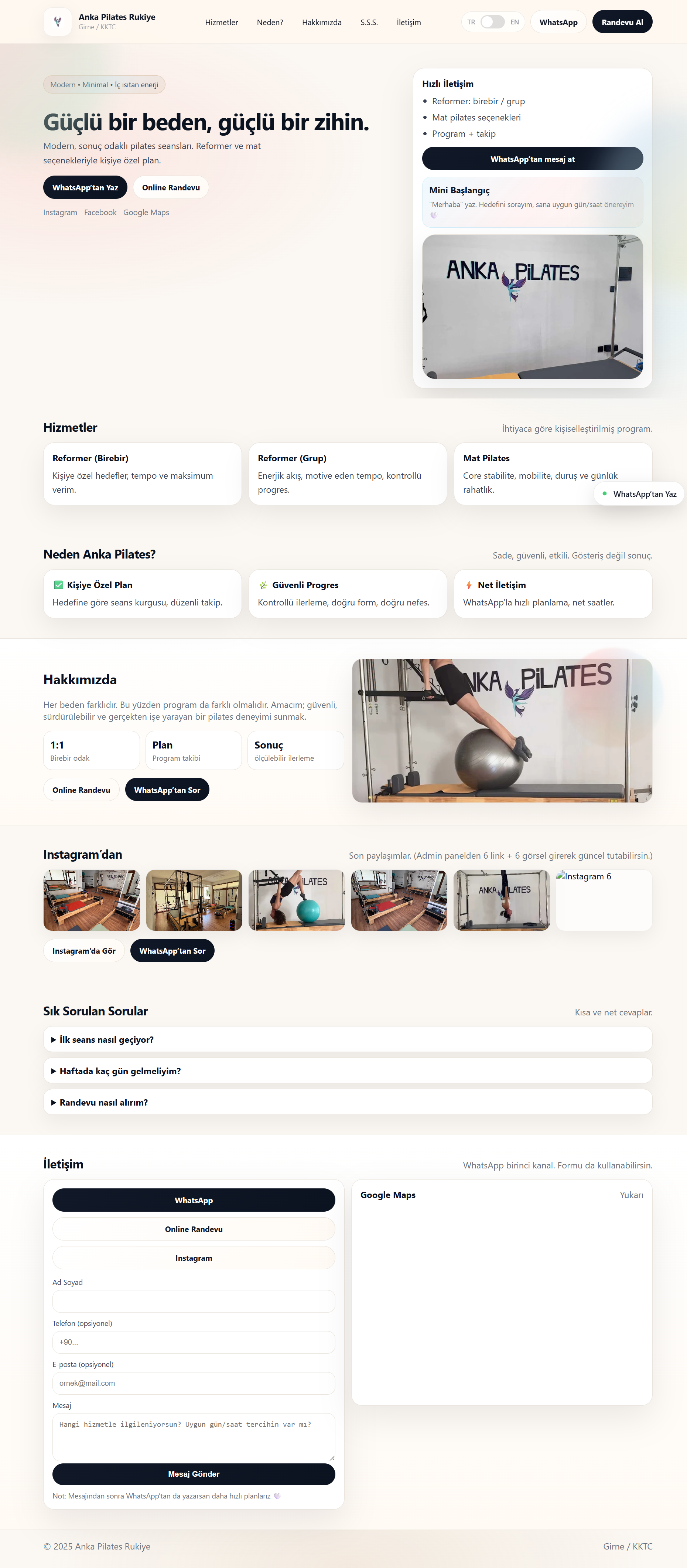 Hizmet sayfaları, ekip profili, blog, iletişim formları.